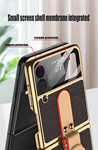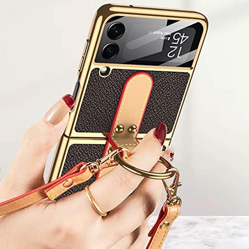 for Z Flip3 5G 2021 case with Ring Lanyard Strap Luxurious Electroplated PU Leather-based Cowl Appropriate with Samsung Galaxy Z Flip 3 5G Case Constructed-in Display screen Protector Telephone Case (Gold+Brown)