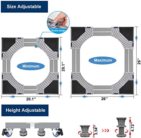【Adjustable Dimension】This cell base might be adjusted from 20.1 inches to 26 inches. Please measure the dimensions of the underside of home equipment earlier than buying. Superb for washer, dryer, fridge, mini fridge, cupboard, heavy pots and different furnishings.