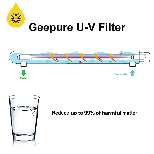 Geekpure Complete Home UV Water Filter– UV Water Air purifier with Additional 2 UV Filter +2 Quartz Sleeve- (12 GPM)