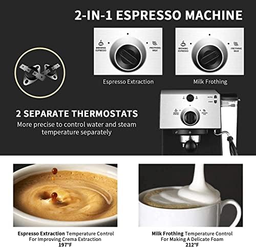 ✔【DOUBLE TEMPERATURE CONTROL】: 2 separate thermostats management adjusts the temperature of water and milk foam, in order that the style of espresso can attain the perfect state, and the milk foam is wealthy and creamy.