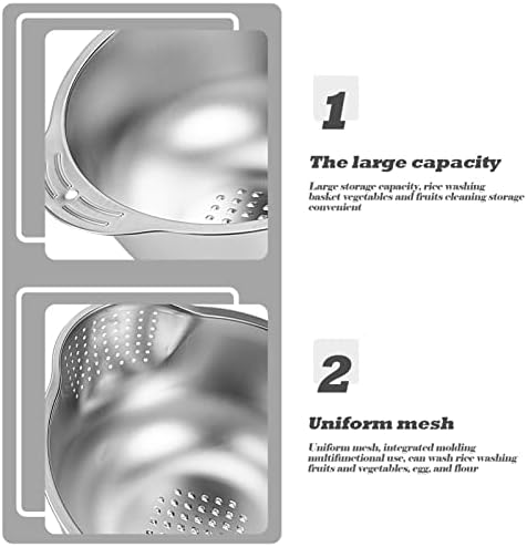 RICE STRAINER Rice Washing Bowl Stainless Metal Small Grains Washing Colander Vegetable Fruit Pasta Strainer Washer Bowls for Kitchen