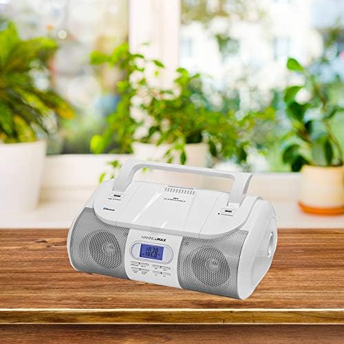 HANNLOMAX HX-318CD Moveable CD/MP3/USB Boombox, FM PLL Radio, Bluetooth, 1 USB Port for MP3 Playback, 1 USB Port for 1A Charging, Aux-in Jack, Headphone Jack, AC/DC Twin Energy Supply (White)