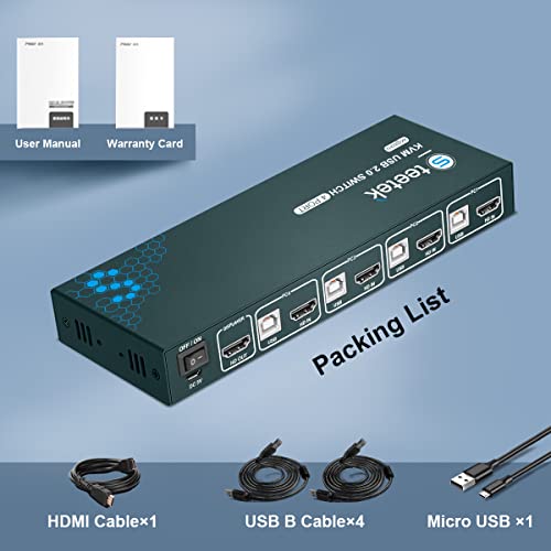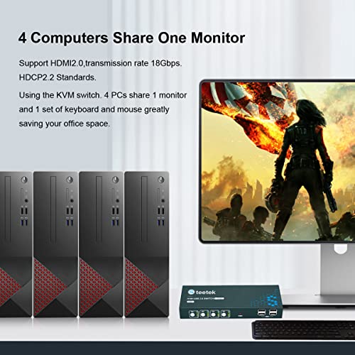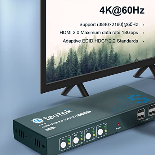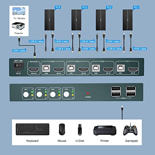 HDMI 2.0 KVM Change, 4K@60Hz (YUV 4:4:4) USB KVM Change HDMI 4 Port Bins, 4 in 1 Out with 4 USB 2.0 Hub, Suitable with Most Keyboards and Mouse, Button Change for Home windows, Linux, Unix and Mac and many others