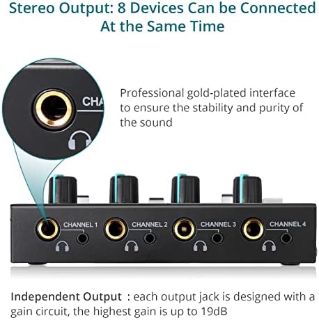 Headphone Amplifier, YGiTK 4 Channels Mono/Stereo Steel Stereo Headphone Amps-4x Quarter Inch and 8X Quarter Inch TRS Headphones Output and 1/4″ & 1/8″& AV Audio Enter(Together with Audio Cable)