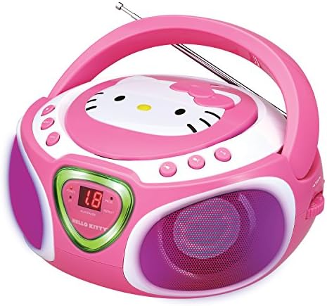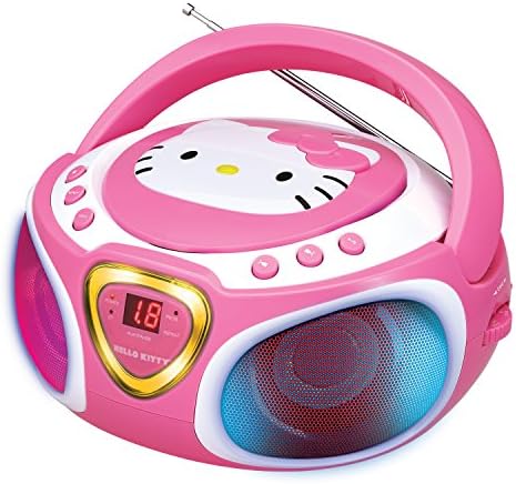 Hiya Kitty Transportable Stereo CD Boombox with AM/FM Radio, Speaker and LED Gentle Present plus iPad/MP3 aux-in jack