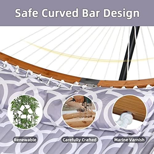 HENG FENG Out of doors Hammock with Stand Included 2 Individual Heavy Responsibility Hammocks Curved Bamboo Spreader Bars, Removable Pillow, Gray