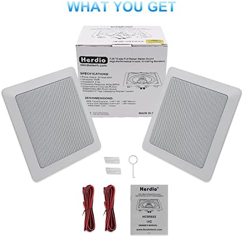 Herdio 5.25 Inch Ceiling Audio system 160W Flush Mount in Wall Audio system for Residence Residing Room Bed room Lavatory Kitchen Workplace