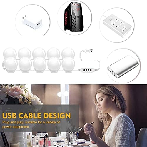 💡【LONG ENOUGH LIGHT STRING】9.5FT/2.9M lengthy LED string with 10 bulbs and 6.6Ft/2M USB cable wire, may be adjusted the size to suit your mirror and maintain your vainness make-up set stunning and neat.