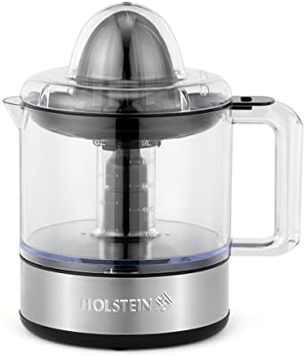 Holstein Housewares 27-oz Electrical Citrus Juicer, Black/Stainless Metal – Consists of Two Cones for Completely different Citrus Sizes, Preferrred for Freshly Squeezed Juices for Breakfast or Drinks