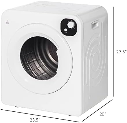 HOMCOM Compact Laundry Dryer Machine, 1300W, 3.22 Cu. Ft. Electrical Automated Transportable Garments Dryer with 7 Drying Modes and Stainless Metal Tub for Condominium or Dorm, White