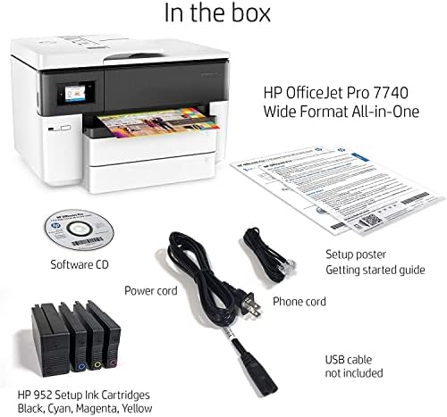 What’s within the field: HP OfficeJet 77 40 Large Format All-in-One Printer; HP 952 Setup Black OfficeJet Ink Cartridge (~1000 pages); HP 952 Setup CMY OfficeJet Ink Cartridge (~625 pages); No CD Flyer; Energy twine; Setup poster; Getting began information. Bundled with Cbmou Exterior Webcam.