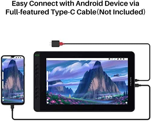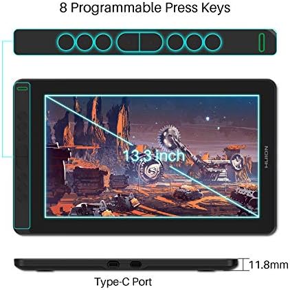 【Humanized Design】 Huion Kamvas 13 pc drawing pill not solely work as pen show, as properly can be utilized as pen pill. Straightforward join with Android gadget by way of full-featured Sort-C cable(not included). It’s ultra-thin solely 11.8mm.