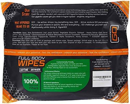 HyperGo Rinse-Free Hypoallergenic Biodegradable Bathing Wipes – All Pure Refreshing Wipe for Put up Exercise, Tenting and Journey- Giant, 1 Pack, Unscented