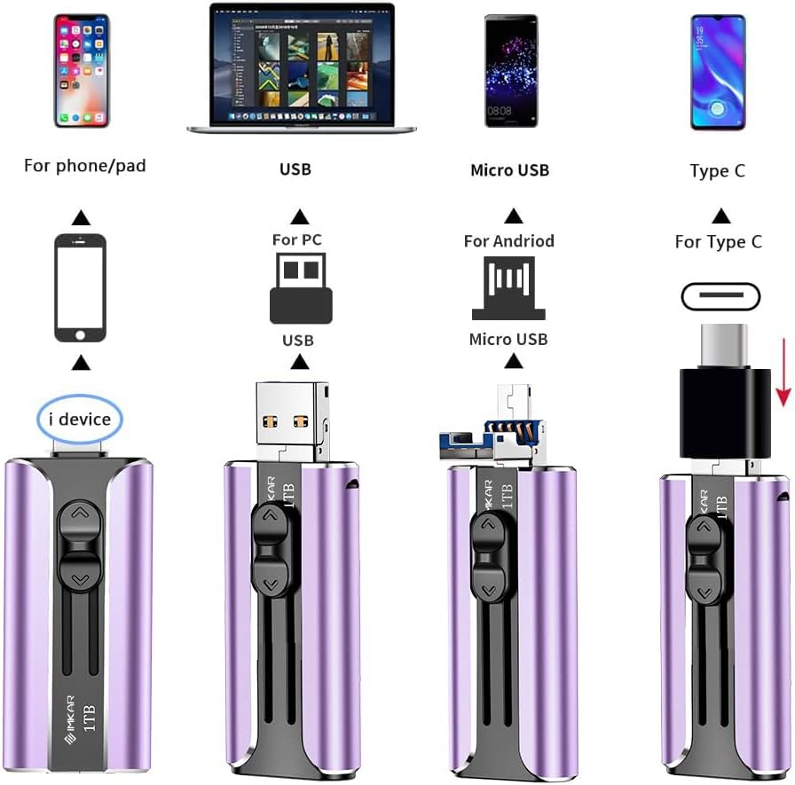 IMKAR USB Flash Drive 1TB I-Telephone Reminiscence Stick Storage for Images and Movies, Telephone Cell Photograph Stick Storage Flash Thumb Drive Suitable with Telephone Pad Android and Computer systems (Purple)