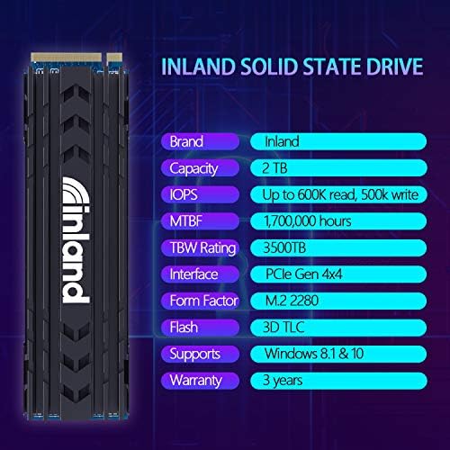 Inland 2TB Efficiency Gen 4.0 NVMe 4 x4 SSD PCIe M.2 2280 Inside Strong State Drive, R/W Velocity as much as 5000MB/s and 4300MB/s, 3500 TBW