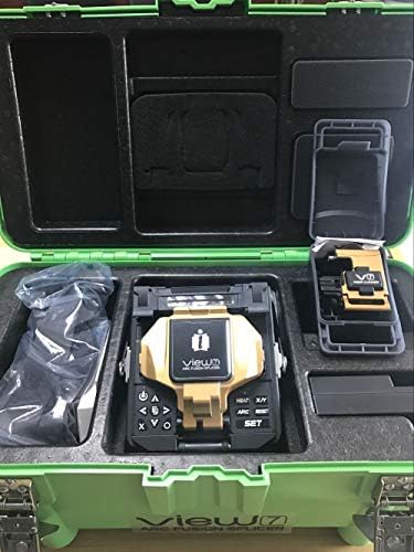Package deal Equipment:View 7 Fusion Splicer V7 Excessive Precision Cleaver VFH-10/VFH-40/FH-SOC Fiber Holders JS-180300 AC Adapter CG-22 Cooling Tray E-50 Electrodes EG-18 Electrode Grinder LBT-20 Battery Pack ACC-25 Energy Cable CJ-11 Cigarette Lighter Cable NX-35 Carrying Case CFS-2 Stripper Handbook CD
