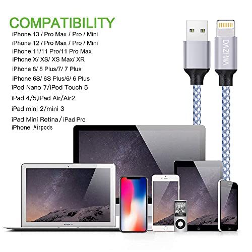 iPhone Charger, DAZHWA 3pack 6ft Cellphone Charger Nylon Braided Lightning Cable Cell Cellphone Quick Charger Cable Wire USB Cable Suitable iPhone 13/12 /11 Professional Max/XS/XR/X/8/7/6S/6 /iPad Extra