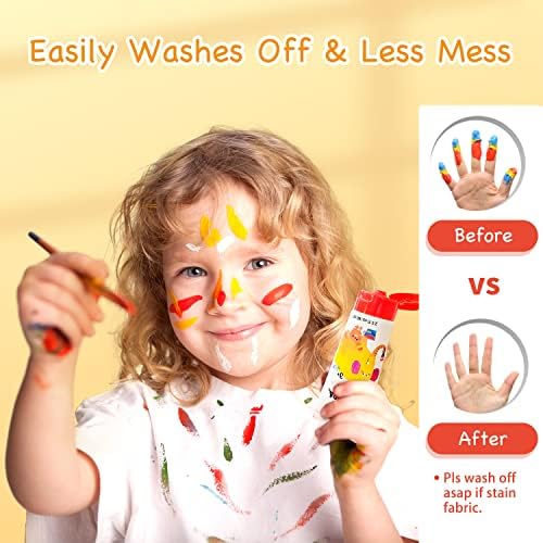 🎨【Vibrant Coloration & Cream Texture】This washable paint set comes with vivid colour in purple, orange, yellow, inexperienced, blue, purple,not too skinny or thick, creamy consistency helps it circulate easily on any floor with wonderful protection. Additionally they may very well be combined nicely and end up very fairly, or you possibly can water it down if wanted. The colourful colour stimulate youngsters sensory growth and hand-on potential. The artwork paints package present hours of leisure, coloring actions and inventive curiosity.