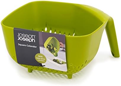 Joseph Joseph Sq. Colander Stackable with Straightforward-Pour Corners and Vertical Deal with, Medium, Inexperienced