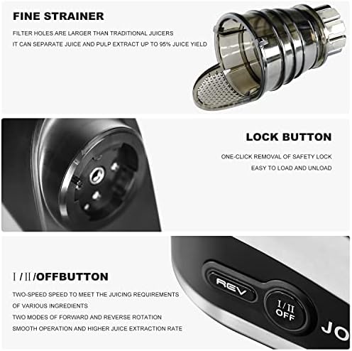 Distinctive & Excessive Yield – In contrast to most juicers,the Sluggish Masticating Juicer adopts two speeds,tender/laborious,juicer machines extracts as much as 95% juice yield vegetable and fruit,The reverse perform can scale back the meals residue within the crushed juicer and keep away from clogging