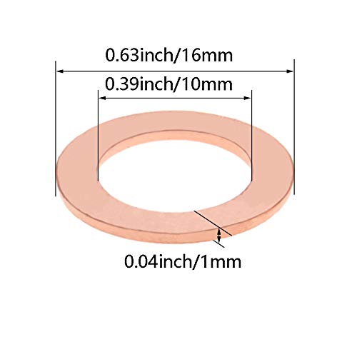 Juvielich 50Pcs Copper Flat Washer M10x16x1mm(IDxODxT)Sealing Ring for Electrical Connections on Family and Industrial Home equipment, Automotive and Marine Makes use of