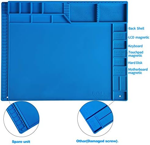 INCREASE WORKING SIZE and MULTI-FUNCTION: The 21.6 x 16.9 Inch restore or soldering mat has the dimensions of the most important restore space at current, electronics restore mat has 48 built-in screw elements storage positions, which might hold the eliminated small elements in good classification and simpler to acquire. You do not have to fret about dropping small screws or precision elements restore instruments in the course of the restore course of, thereby enhancing work effectivity and preserving the restore platform tidy.