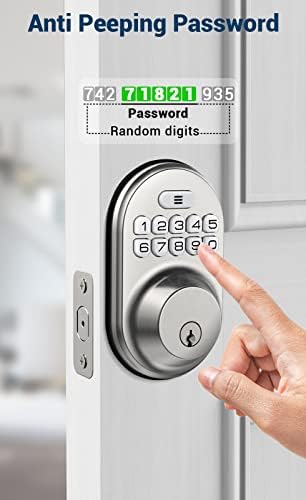 Keyless Entry Door Lock – Veise Digital Keypad Deadbolt, Keyed Entry, Auto Lock, Anti-Peeking Password, Again Lit & Simple Set up Design, IP65 Waterproof, Satin Nickel