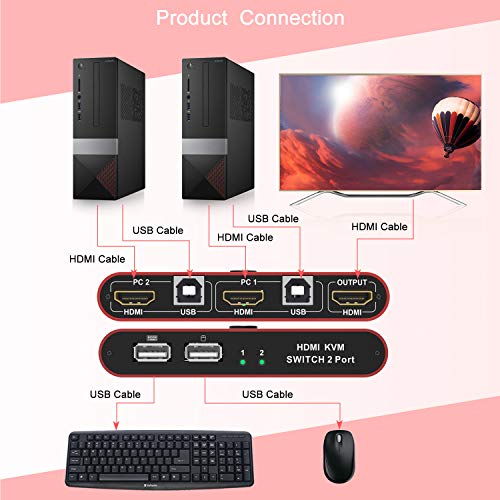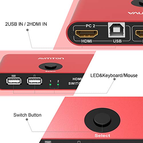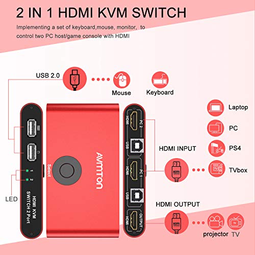 ☀【2 Ports USB KVM HDMI Swap Field】: AVMTON HDMI KVM Swap 2×1 lets you management 2 pc with just one set of controls and show display (mouse and keyboard).Powered by USB cables, no energy adapter required,with USB 2.0 gadgets for one button swapping.Saving your house and time, make your work and life rather more easy and environment friendly.