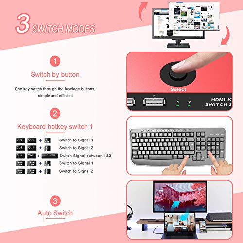KVM Swap HDMI 2 Port 4K,AVMTON KVM HDMI Switches Field 2 in 1 Out,for 2PC Share 1 Monitor and One Keyboard Mouse,KVM Swap Displayport,Help 4K@30Hz 3D 1080P and Hotkey Swap