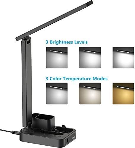 LED Desk Lamp with Pen Holder, Drevet Examine Desk Gentle with USB Charging Port, 3 Lighting Modes, 3 Degree Brightness,1H Timer, Contact Management, Eye-Caring Lamp, Dorm Room Important for School College students
