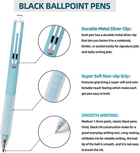 Lin.Pen Ballpoint Pens Medium Level 1mm Black Ink Work Pen with Tremendous Mushy Grip Ball Level Pen for Males Ladies Retractable Workplace Pens (Black ink, Black-6)