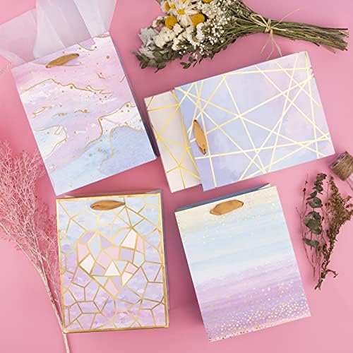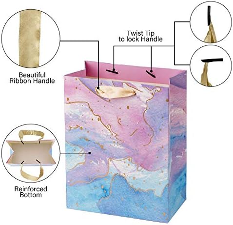 Loveinside Medium Dimension Reward Baggage-Colourful Marble Sample Reward Bag with Tissue Paper for Buying, Events, Marriage ceremony, Child Bathe, Craft-4 Pack-7″ X 4″ X 9″