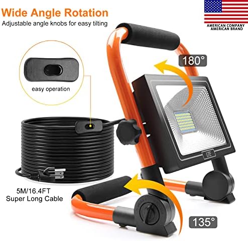 【IP66 Waterproof】With IP66 degree, floodlights could be broadly utilized in out of doors and indoor lighting tasks. Straightforward to make use of with a 16.4Ft/5M energy twine, on/off swap plug and play, transportable deal with and agency standing bracket. Whether or not you want it to hold or get up, this adjustable transportable work gentle has your again.