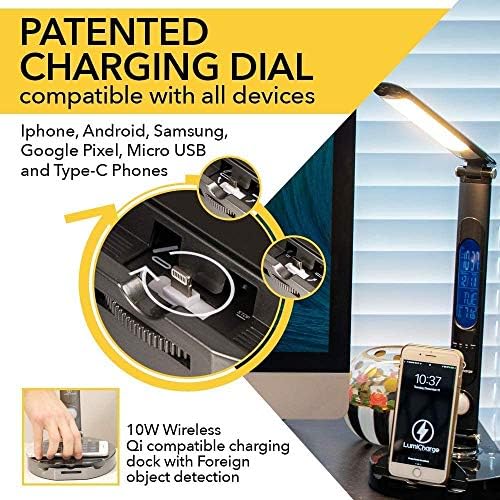 LumiCharge Sensible Adjustable Desk Lamp and Quick Qi Wi-fi Charger Stand Bundle