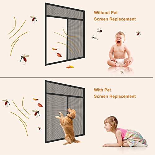 HEAVY DUTY MATERIAL: Made from finest VINYL COATED POLYESTER, which is stronger and extra elastic than bizarre fiberglass and polyester, successfully forestall being torn or scratched by cats, canines, even BIG pets (different animals) and higher prolongs the service lifetime of the window display screen.
