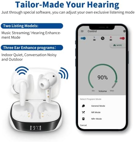 Maihear 2 in 1 Bluetooth and Rechargeable Listening to Aids with APP Management for Seniors Adults, Private Digital Listening to Amplifiers Sound System with Earbuds Voice Enhancer Noise Cancelling 1 Pair (White), Items for Father and Mom