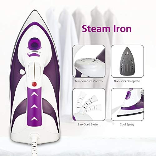 MARTISAN Steam Iron, 1200W Non-Stick Soleplate Iron,Variable Temperature and Steam Management, Self-Cleansing Operate, Purple