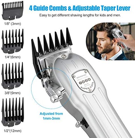 ▶【equipment】:Outfitted with new fashion 4 black coded information combs(3mm(1/8”),6mm(1/4”),9mm(3/8”),12mm(1/2”)), making your haircut straightforward and humorous.An additional cleansing brush is included for cleansing your blades after use(Blade might be washed by water,straightforward to wash)