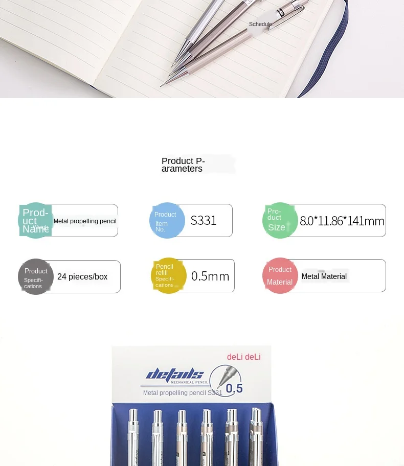 Specification: M&G S331 metal movable pencil 0.5mm full metal student press automatic pencil stationery automatic pen Random color delivery