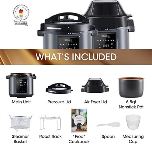 THE PRESSURE COOKER THAT AIR FRIES: Magician of the Kitchen – Wishing to broaden your kitchen with price range and storage constraints? Michelangelo’s progressive digital cooking pot can work multi-functionally as an Air Fryer, Stress Cooker, Gradual Cooker, Steamer and far more. Combining strain cooker and air fryer features, this strain air fryer can simply flip cooking into an thrilling magic present. With a easy swap of two removable lids, two variables, infinite potentialities.