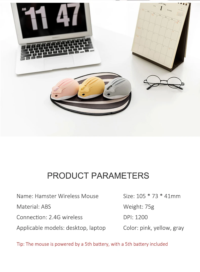 Specification: Mini Pc Mouse Small Hand Cartoon Hamster Artistic Mause 1200DPI USB Wi-fi Gaming Mice Woman’ Reward For Laptop computer PC Gamer
