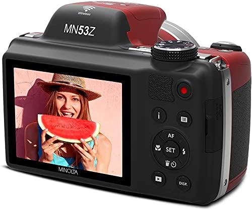 Minolta MN53Z-R Professional Shot 16MP Digital Digicam with 53x Optical Zoom, Pink Bundle with Lexar Skilled 633x 64GB UHS-1 Class 10 SDXC Reminiscence Card and Deco Gear Digicam Bag (Small) with Accent Equipment