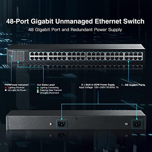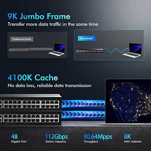 Gigabit Ports: 48 gigabit ethernet ports, switching capability is 112Gbps, every port can attain 1G fee on the similar time, with greater knowledge throughput. 8K Mac tackle desk, extra units could be linked and can be utilized in giant networks