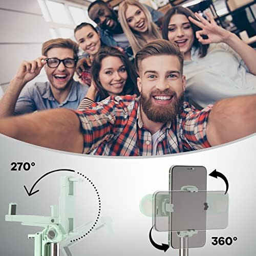 MQOUNY Selfie Stick Tripod for iPhone,Stylishly Formed Twin Lights,Transportable All-in-One Skilled Journey Tripod with Wi-fi Distant Appropriate with iPhone 13/13 Professional/Android Smartphone (Inexperienced)
