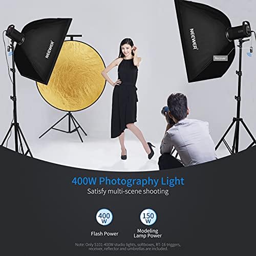 Neewer 800W Photograph Studio Strobe Flash Lighting Equipment: (2) S101 400W Monolights with Bowens Mount, (2) Softbox, (1) RT-16 Set off, (2) Umbrella, (1) Reflector for Studio, Product, Portrait Pictures