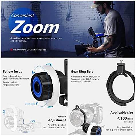 【Matte Field & Comply with Focus】 Matte field suits lenses 43–77mm in diameter. The three flags block extreme mild and keep away from lens glare for clear, sharp footage. Comply with focus means that you can regulate the main target easily and precisely with one hand