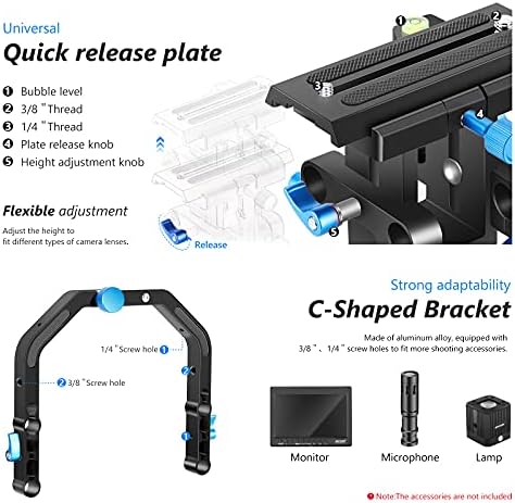 【Common Baseplate】 Baseplate is appropriate with DSLR cameras, video cameras, and camcorders through its 1/4” and three/8” mounting threads. The short launch plate permits on the spot digicam mounting, and the bubble degree offers you exact horizontal composition