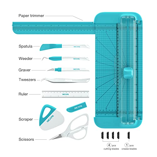 NICAPA Paper Cutter Device Set for Vinyl ,8 Pcs Primary Weeding Device Package Craft Knife/Weeder/Scraper/Spatula/Tweezers/Scissors A4 Craft Paper Trimmer Device Set for Vinyl, Paper, Picture and Cardstock – Blue