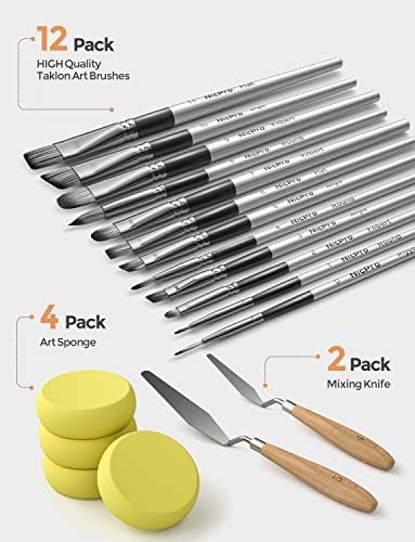 Nicpro Paint Brush: 12 totally different sizes present totally different capabilities, cowl all of your wants, spherical: (1, 4, 8 ) flat:(6, 11) filbert: (2, 7, 9) angel: (3, 5, 10) rigger: 0 – constructed to final. Maintain in fine condition
