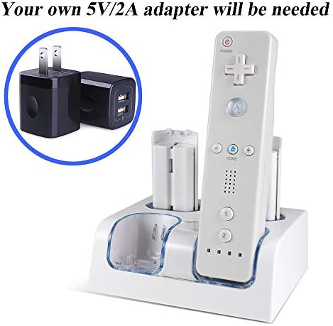 Free Charging Twine: Wii charger dock comes with a usb charging cable. A 5V/2A wall charger adapter is required.(Wall Charger Is Not Included)